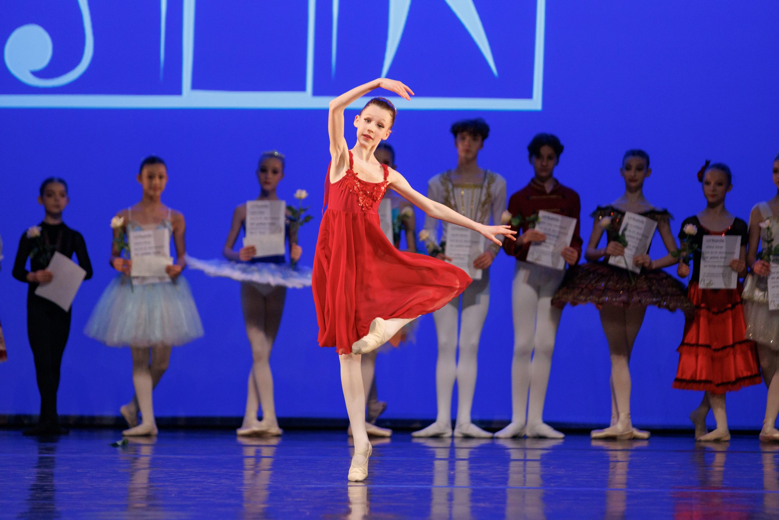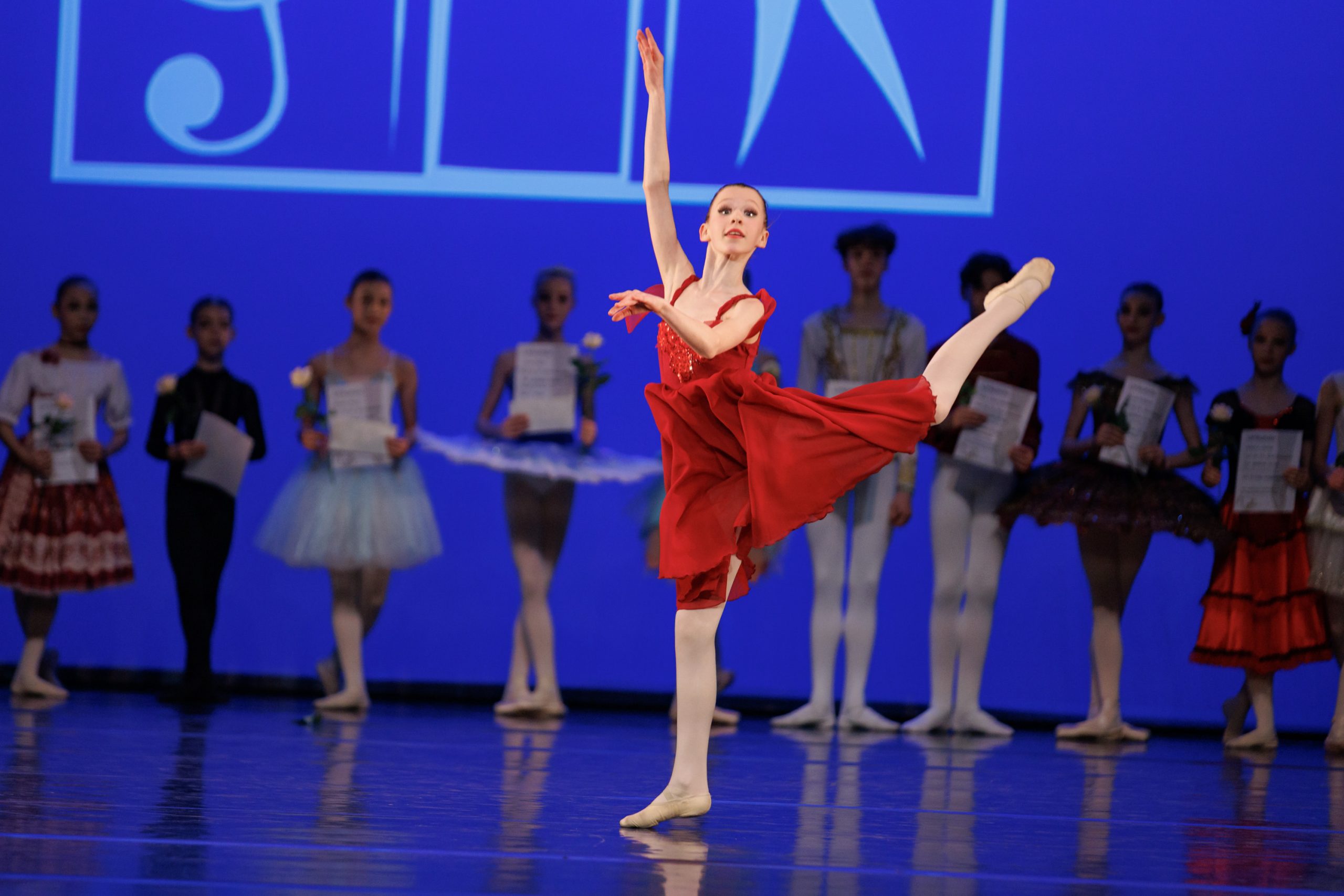 19 Mädchen und drei Jungen haben es in die Endrunde geschafft; als Gruppe A im Alter von 10 bis 12 Jahren, Gruppe B von 13 bis 15 Jahren. Nach Ausschnitten aus dem Trainingsprogramm erwartete das Publikum nach der Pause ein glitzernder Augenschmaus: Aus der Gruppe A eröffneten Amy Ferkaluk aus Mühlacker sowie Annelie Broszat aus München die Variation kurzer solistischer Auftritte. Weiter nahmen Moritz Greul aus dem mittelfränkischen Ansbach, Oleksandra Kulyk, Emma Dong, Otoha Kobayashi und Miran Dong aus Frankfurt, Amelie Römisch aus München und Lucie Gehr aus Zürich in der Schweiz teil.